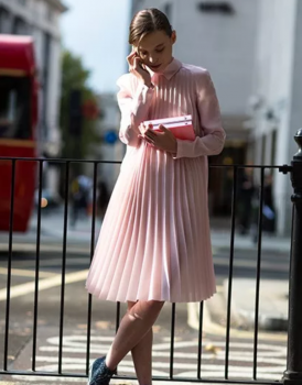 比如,穿衣上可以选择最应景的浪漫粉色系,当然,如果没有Rihanna的女王范或是超模气场,建议不要轻易尝试一身all pink出街。所以通常来说,一身基本款+一两件粉色单品的做法最实用,既凸显粉色的甜美,也不会让你沦为幼稚的庸脂俗粉。还可以选择饱和度较低的粉色,或者裸色这种‘轻熟粉’,比少女粉高级,能增添更多的柔和印象。