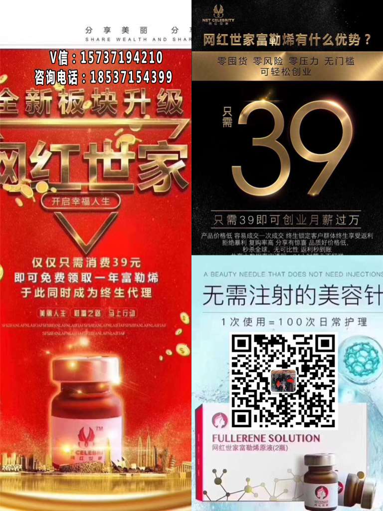 网红世家,新微商,新零售,奖金制度全网绝无仅有,独此一份,可轻松快速月入过百万,富勒烯拥有,快见效、强刚需、快消耗、有足够的粘性,一次打造建立持续收入!