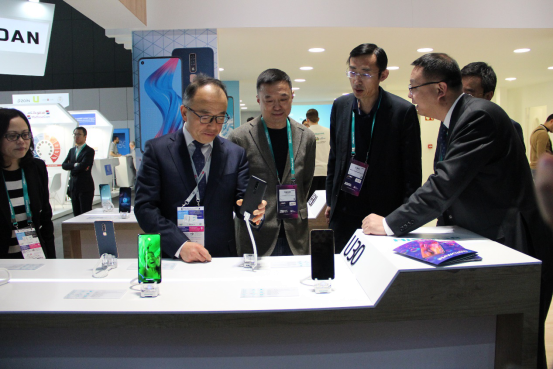 2月26日,在2019世界移动通信大会(MWC2019)上,中国电信副总经理高同庆在海信集团副总裁、海信电子信息集团总裁程开训的陪同下,参观海信手机展区,体验星眸全视屏手机U30等精品机型,肯定海信手机在工业设计、5G创新研发上的实力。