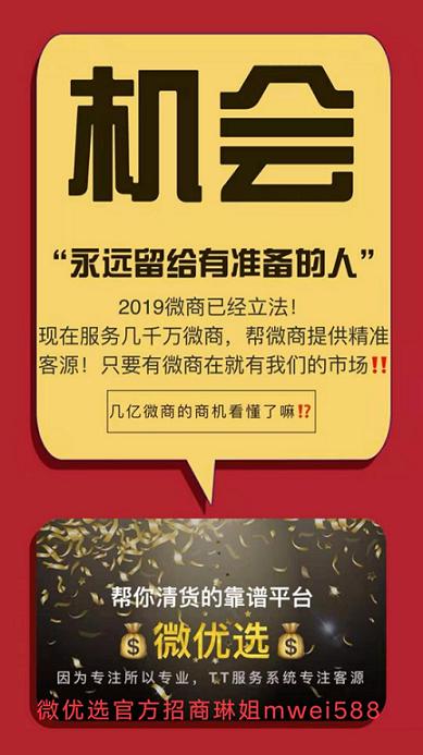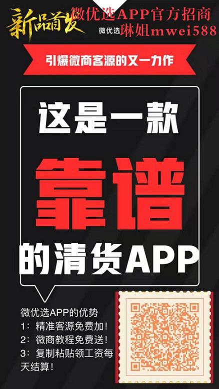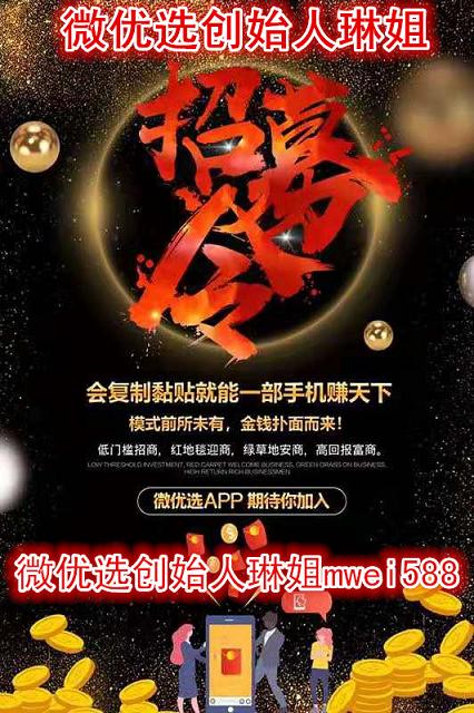 现在新品招商中,心动不如行动,看懂商机。就赶快添加微优选创始人琳姐微信:mwei588,手把手教你赚米,趋势谁也挡不住,不改变就会被淘汰!全民微商的时代,你需要找一个好项目,好平台,找一个能带领你挣钱的人!每一次创业大潮,都会成就一些人的梦想!人生重要的不是我们走了哪条路,而是我们是否迈出了成功的的第一步!