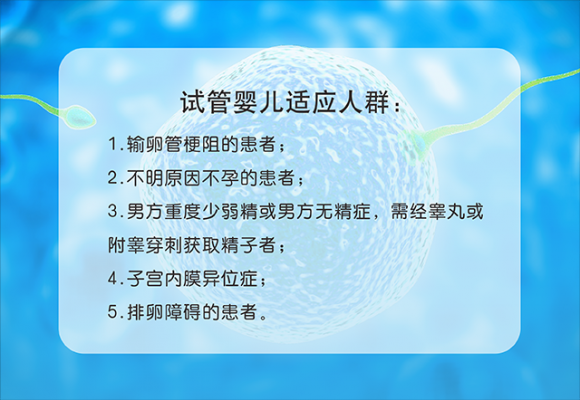 输卵管梗阻的患者;2.不明原因不孕的患者;3.男方重度少弱精活无精症,需要经过睾丸或附睾穿刺获取精子的患者;4.子宫内膜异位症;5.排卵障碍的患者。