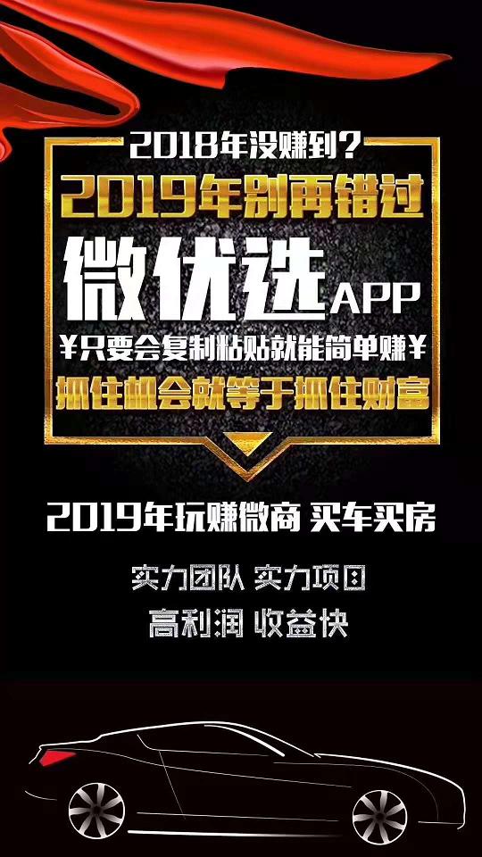 2019新品微优选再掀微商狂潮,火爆微商界,以小博大,眼光决定高度,期待你的加入,我们携手并进再创辉煌,这里是精英汇聚的地方,给自己一个机会给你永远的提升一次性投资,终身带你赚,不输的前提!团队每天有大咖分享方法,我也会手把手教你帮助你逆袭微商,团队的宗旨,一个人赚钱不叫牛 ,代理一起赚钱才叫牛!狭路相逢勇者