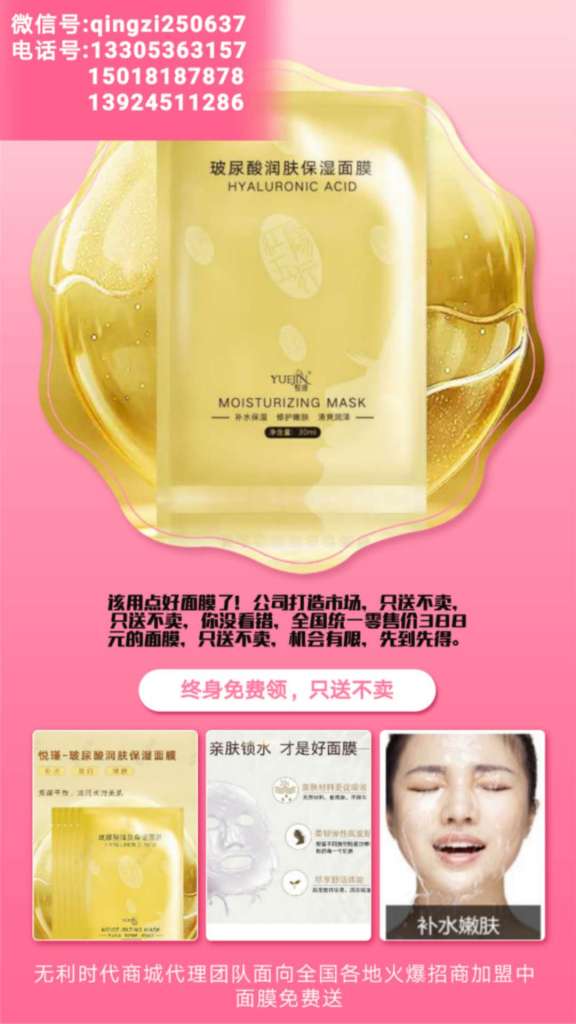 红阳五行玻尿酸润肤保湿面膜加盟费多少,是不是三无产品,有激素吗?扫码关注公众号,详情了解。