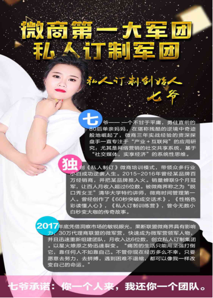 七爷承诺你一个人来,我还你一个团队,现在就是系统化培训,私人订制就是微商界最牛逼的系统,跟上我的节奏,七爷必定带你赚‼️‼️‼️