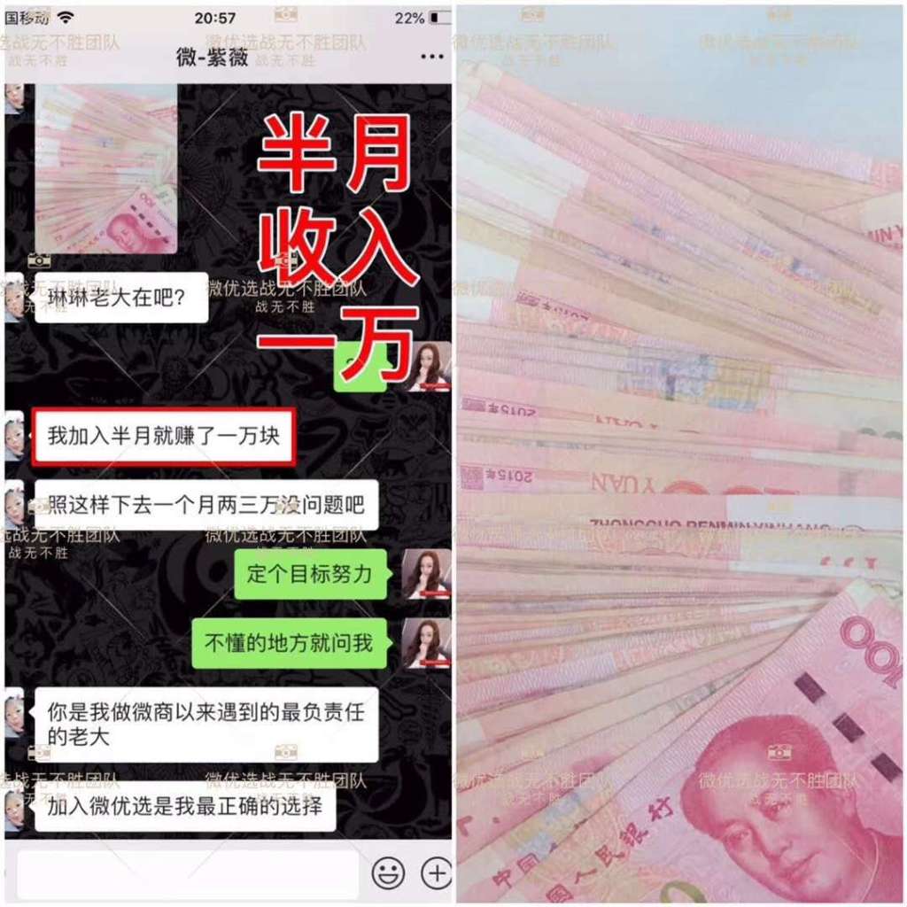 第二.微优选推广,就是可以帮助微商推广产品及他们所做项目赚钱,每天加加微商发圈,客户来单打包资料发公司有专业安排推广,你赚取推广利润就可!除去上架成本单单纯利润!