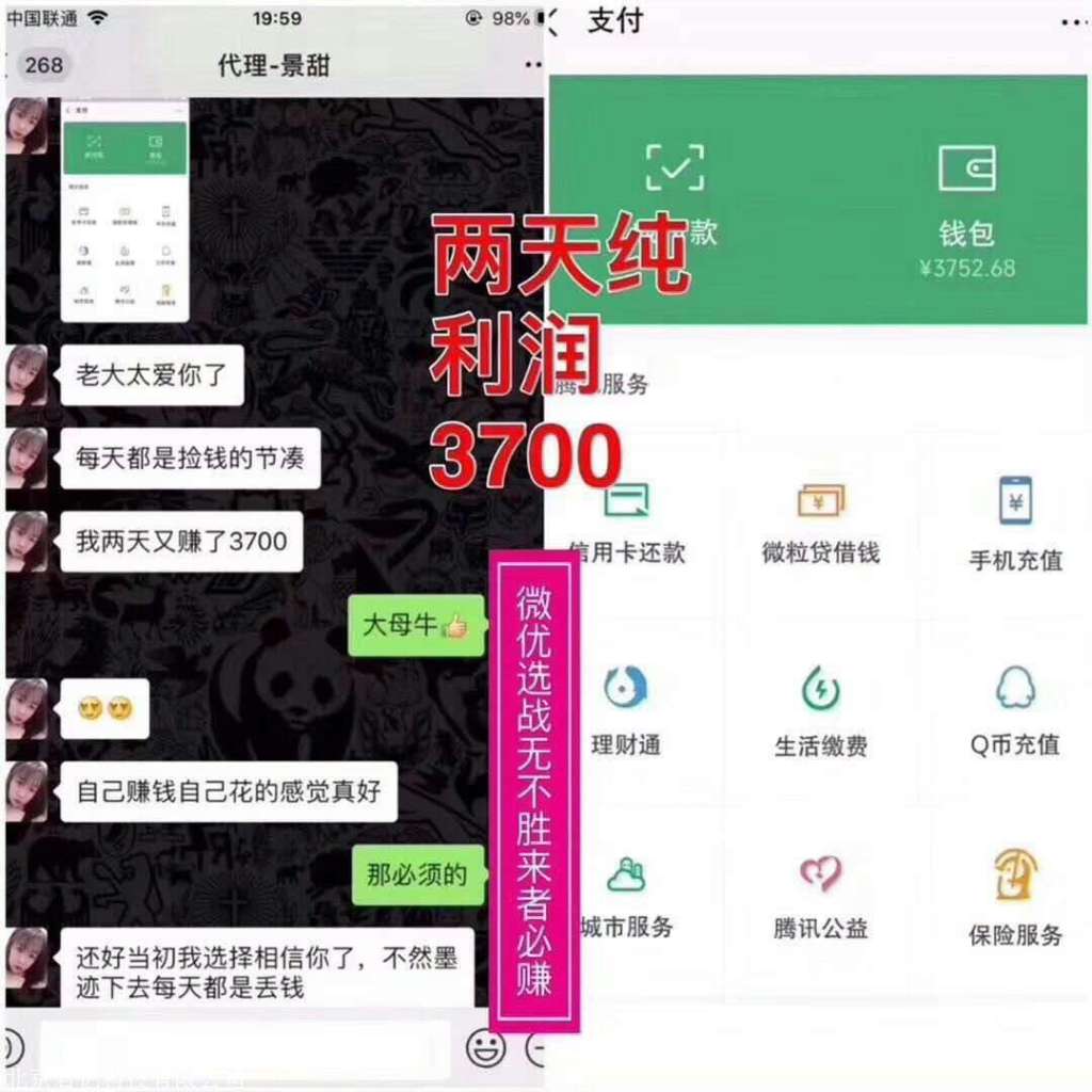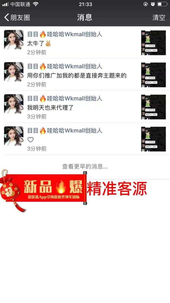 第二.微优选推广,就是可以帮助微商推广产品及他们所做项目赚钱,每天加加微商发圈,客户来单打包资料发公司有专业安排推广,你赚取推广利润就可!除去上架成本单单纯利润!