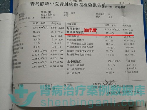 肌酐降至645umol/L,血红蛋白涨到101g/L,贫血纠正至正常