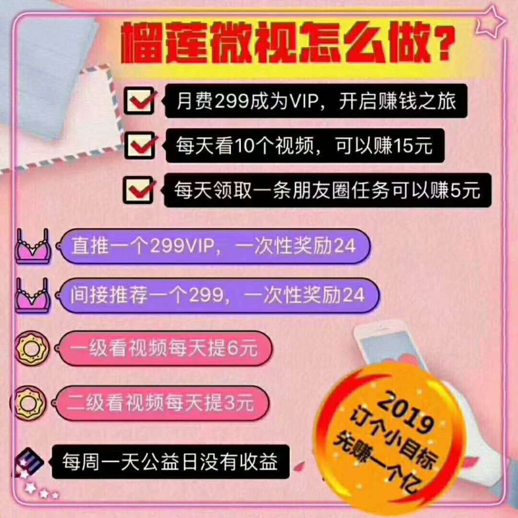 你或许在担心这个项目需要交钱,那他到底靠不靠谱呢?其实你想一下,加入榴莲微视只需要299元,那299能干什么呢?吃两顿饭都没有了。