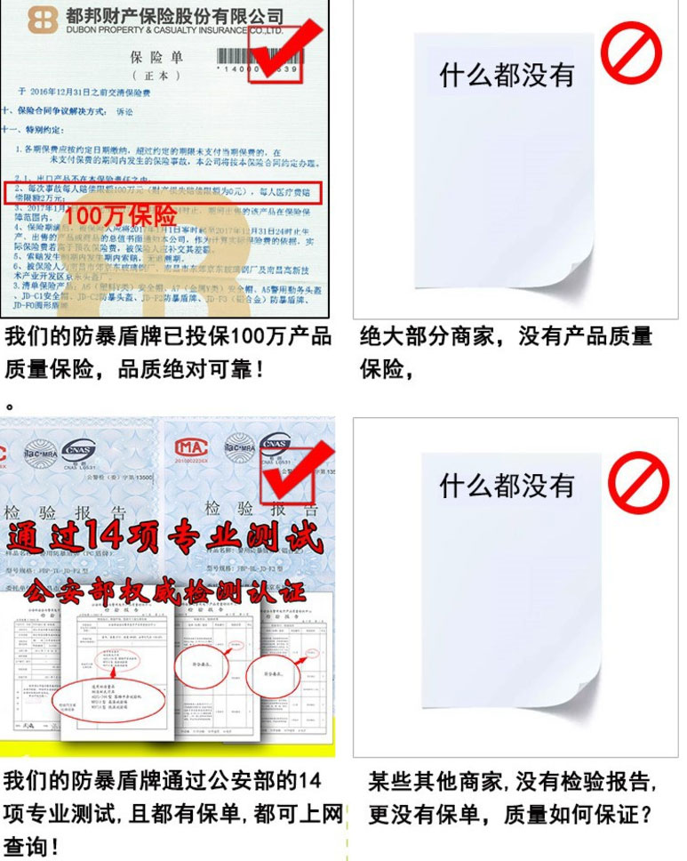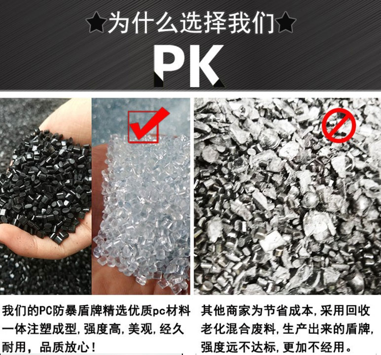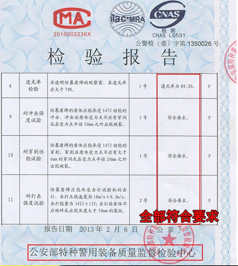 龙琪防爆盾牌品质优良,厚度为4.2毫米,单片盾牌重量为2.3公斤,有公安部检测报告,质量可靠,优于市面同类产品。