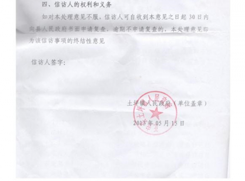 2013年1月,杨秀国夫妇又以“卢清海没付租金(大米),未合法取得该地使用权”为由,向土坪镇人民政府提起“不能为其办证”的请求。就此,土坪镇人民政府责令综治办、司法所、国土所等相关部门联合展开调查。