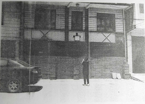 卢清仙家用铁抓钉将卢祖波家临街的大门钉了起来的场景