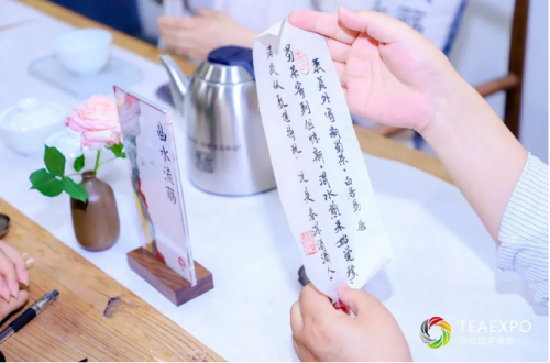 古有文人雅士顺流取酒,今有茶人茶友临水品茶。曲水流觞是华巨臣茶博会借打造的一个以自然为背景的主题茶会区。