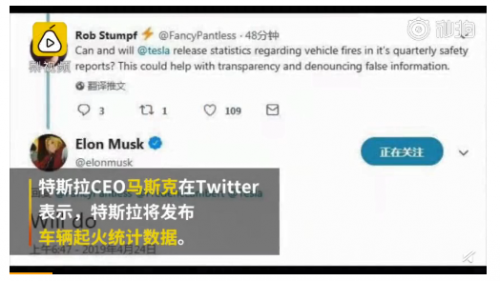 也难怪特斯拉CEO马斯克会在Twitter回应,“每年有超过一百万的燃油车起火并导致数千人死亡,但特斯拉的一次起火事件且无人受伤却成为头条新闻,为什么在这个问题上如此双标?”