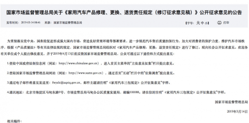 3月14日,市场监管总局针对汽车三包新规(《家用汽车产品修理、更换、退货责任规定(修订征求意见稿)》)向社会公开征求意见。原有的汽车三包规定包含所有汽车产品,修订稿最大的变化就是专门将动力电池、电机等新能源汽车特有重要部件纳入退换货范畴。