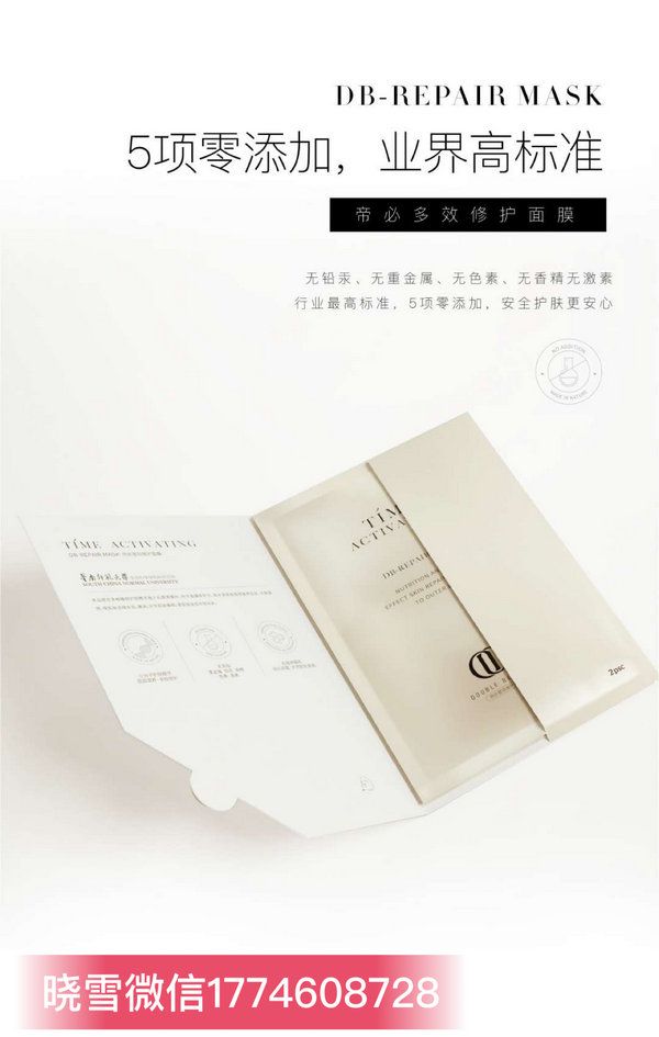帝必DB多效修护面膜5项零添加业界高标准,无铅汞、无重金属、无色素、无香精、无激素!