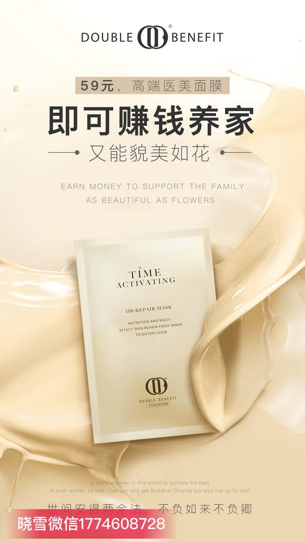 59元,高端医美面膜即可赚钱养家,又能貌美如花世间安得两全法不负如来不负卿.赶快咨询省代晓雪V信1774608728