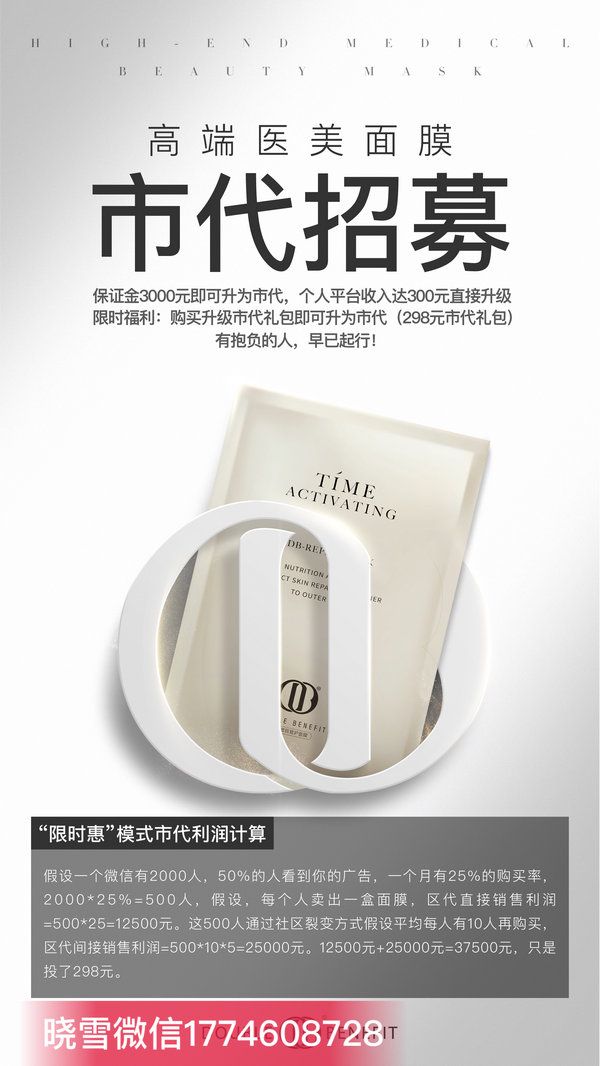 帝必DB医美面膜“限时惠”模式市代利润计算