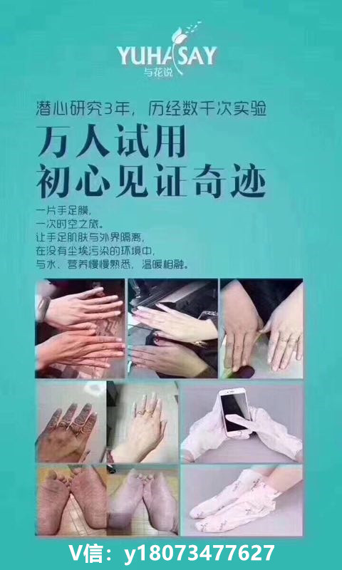 女人如花,花开有百媚千红,女人有风情万种。花朵的美丽需要呵护,女人的容颜亦是如此。娇艳的花朵让人驻足,漂亮的女人让人留恋。所以,现在的女性,对美的要求也越来越高了。从头发,眉毛,眼睛,鼻子,到私密处,再到我们的脚指甲,我们女性对美的追求是永无止境的。然而,美不美看脸,老不老看手,手是我们的第二张脸。一个女人的精致,优雅,品质与高贵都在你手伸出来的那一刻决定。你看我们朋友圈,各种护肤品,面膜,彩妆,私护产品以及保健品,减肥产品让人眼花缭乱。但是唯独没有看到卖手膜的,你说是吗? 我们的与花说,就是唯一一个中国高端微商手足膜的品牌。随着女性对生活品质的需求,手足膜将成为每个爱美女性的必备品,形成超级大市场。了解手足膜代理,请加V信:y18073477627咨询。