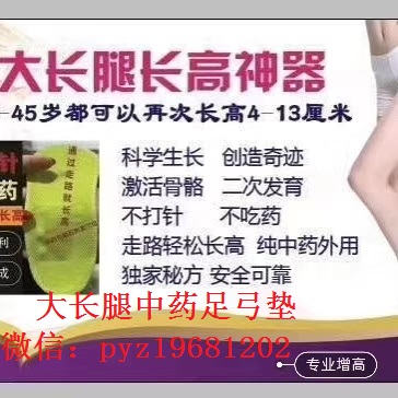如果你曾经因为身高被嫌弃,被嘲笑!都可以来找我!因为在你不经意间的坚持下!有一天你惊奇地发现,你居然长高了!人的骨骼是可以人为的去塑造的,通过一定的外力方法的刺激,骨骼的长度形状是可以改变的,从而起到一定的增高效果。给自己一次改变的机会,增高不再是梦!【大长腿中药足弓垫 微信号:pyz19681202】