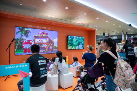 本次五一巡展,海信以“健康护眼、合家共享“为主题,在高端商场搭建了大型快闪体验厅,重点展示了海信4K激光电视L5/L7系列的观看舒适性,并开展了“100个妈妈的选择-护眼电视现场众测“活动,邀请用户针对激光电视和普通液晶电视的视觉舒适度进行投票。除此之外,现场还专门设置了亲子游乐区、体感游戏区、K歌嗨唱区等特色区域,成为了全家共享的娱乐体验场所。
