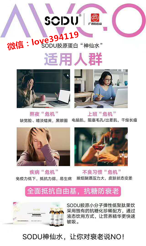 人之所以会衰老,主要是因为身体里的胶原蛋白成分流失所导致的。而根据人体解剖学来看,人体的20%成分就是蛋白质,胶原蛋白占据其中之三。不过从20岁开始,胶原蛋白就会逐渐流失,想要对抗这种流失,你需要的就是补充足够的胶原蛋白。尤其是女性朋友,想要永葆青春,神仙水膠原蛋白飲是你的不二之选。神仙水膠原蛋白飲含激素吗?代理能不能赚钱呢?微信:love394119