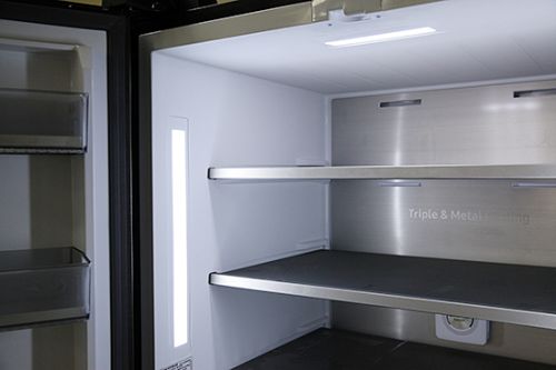 冷藏室的照明由带有导光板的LED灯源提供,灯光非常柔和,更科学的照亮空间不刺眼。