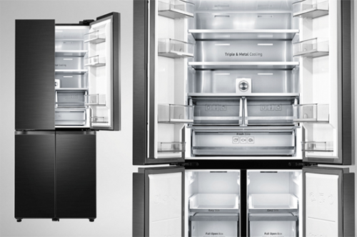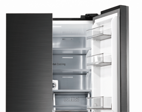 作为三星品道私厨系列冰箱中的最新产品,三星RF50N5970B1/SC采用十字对开门设计,524L大容量,带来更灵活便捷的存储方案;搭配金属匀冷技术、无霜保湿三循环系统和智能变频压缩机,更好地养护食材。