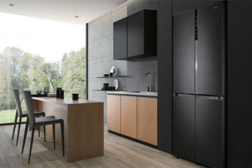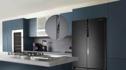 从外观上来说,三星品道私厨系列RF50N5970B1/SC冰箱采用了当下十分流行的十字对开门设计,黑色不锈钢拉丝材料面板,配合多层工艺按压上细腻纹路,通透细腻有光泽,手感极佳,不易沾染指纹,给用户带来极强的时尚质感。