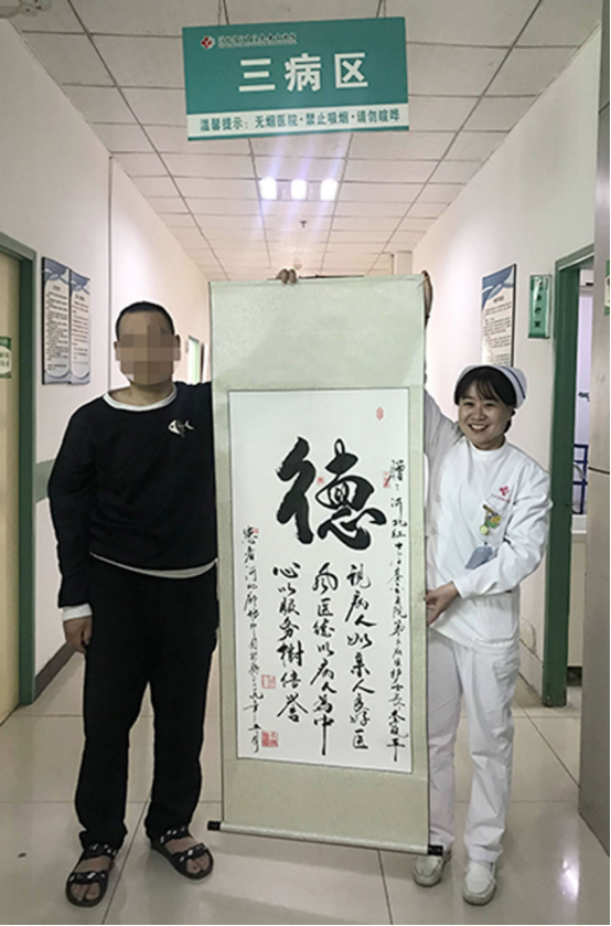 (马腾为李晓平护士长送上“德”字以表感谢)