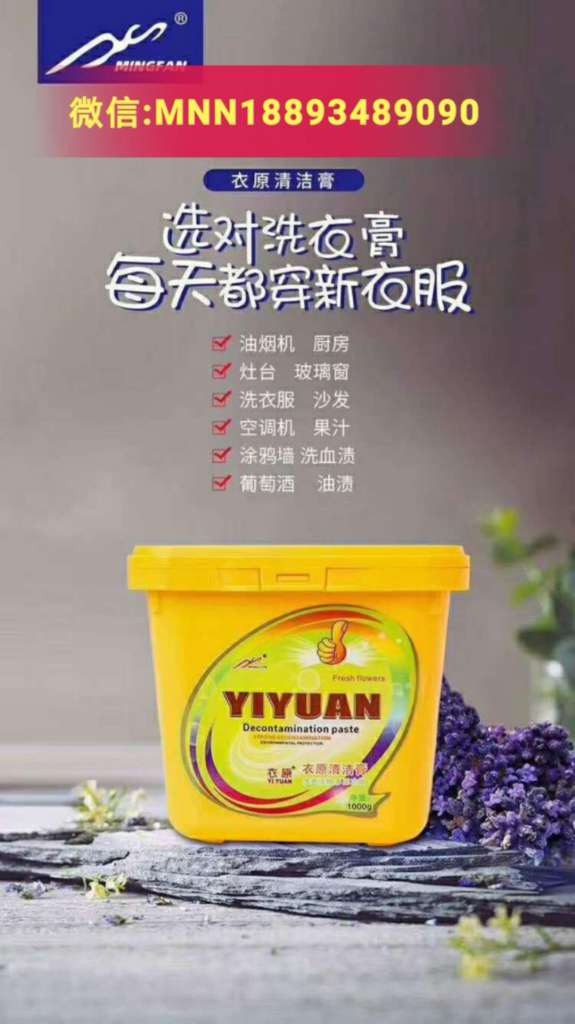 衣原清洁膏活氧酵母颗粒泡泡产生的氧分子能杀除生活中多种常见病菌,例如常见金黄色葡萄球菌、大肠杆菌、白色念珠菌,杀菌抑菌率高达99.9%。氧分子还能杀灭产生污秽气味的细菌,分解细菌排泄物和酸性物质,有效去除异味。用衣原清洁膏清洗家里的抽油烟机、洗衣机,马桶、空调、瓷砖表面等卫生死角,去污杀菌效果都是非常好的。让你打扫起来更加轻松。不但能洗衣服,家里的一切污渍都能搞定。衣原清洁膏洗衣专家,让家里一切家务变得轻松!!!! 详情咨询电话:18893489090,微信:MNN18893489090