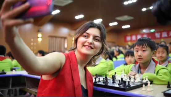国际象棋大师贝拉·霍特纳什维利与衡水实验小学的学生互动