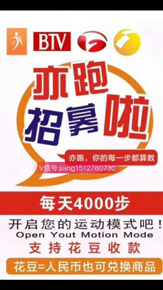 2019一定要抓住机会,选择亦跑站在财富风口实现财富与创业梦想。亦跑以运动健康为理念,花豆为激励,鼓励全民运动,注重身心健康,让运动更刺激点和有动力。我相信一定会越来越多的人加入进来,所以市场倍增速度很快,接受人的人群也广,适合每个人,也很容易推广,希望看懂得朋友,抓紧时间注册推广,上车大赚。亦跑群怎么进,亦跑怎么对接,