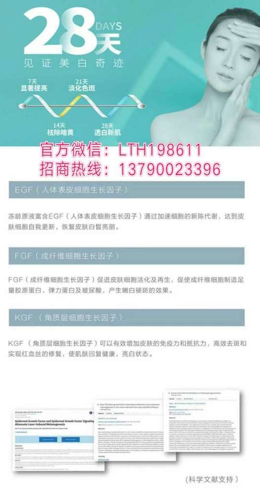 冻龄原液提取与人体的脐带干细胞,富含促进皮肤高效代谢和美白的多肽因子成分。直达皮肤基底层,进行修护与更新,促进皮肤的新陈代谢。