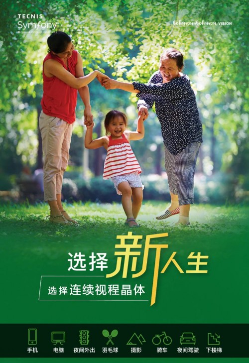 目前,白内障手术不仅可以解决你的白内障,还可以把眼部其他的一些屈光的问题,比如近视眼、老花眼和散光一起解决,让中老年人能够拥有与年轻人一样的健康好视力。目前,白内障人工晶体分为单焦点、双焦点、三焦点和连续视程人工晶体。不同于传统的单焦点、多焦点人工晶体只能在一个或几个焦点上看清,强生在2014年推出的TECNIS Symfony® (新无级)连续视程人工晶状体,可以让患者在固定焦点之间的任何一个点上都能看的更清楚。