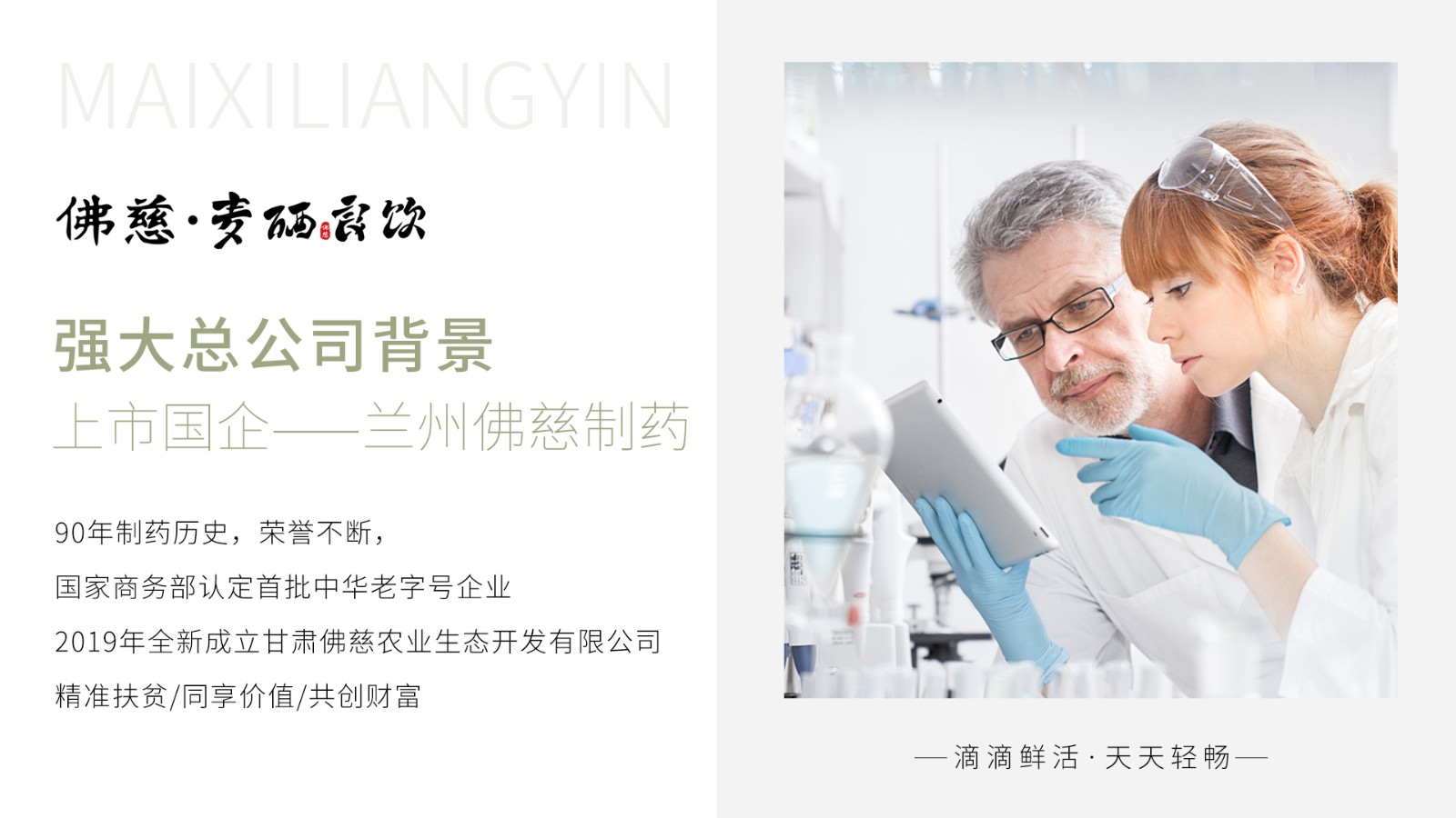 佛慈麦硒良饮大麦若叶青汁是一款目前火爆市场的健康饮品,精选长至20~30CM的大麦若叶期嫩苗,通过相应的工艺制作成粉末后再加水调成汁饮用。和市面的大麦若叶、大麦青汁,都是一类产品,只是叫法不同。兰州佛慈制药作为国内知名中华老字号,创立至今,已收获诸多荣誉,2018年甘肃佛慈生态农业发展有限公司旗下昆山慈清食品有限公司出品麦硒良饮大麦若叶青汁,正式进军社交电商渠道,当顶尖的食品工艺邂逅至臻至美的养生哲学时,市场必将一触即燃!