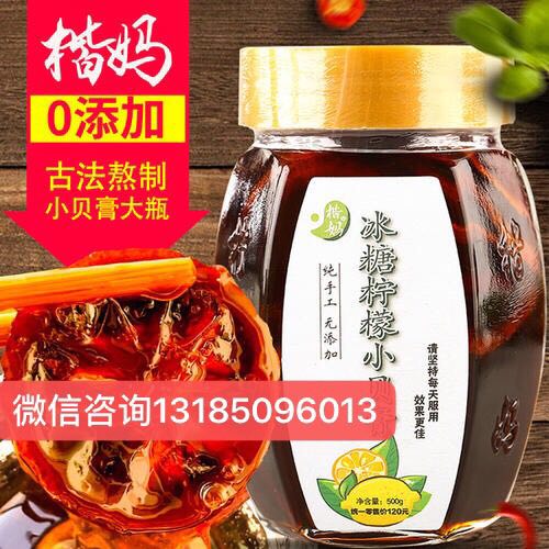 【原料】冰糖、鲜柠檬、陈皮、薄荷粉、蜂蜜。纯手工精工细作,承诺0添加0防腐。柠檬小贝膏针对小儿咳嗽,抽烟,喝酒,痰多嗓子咽喉不适,慢性咽炎,长期便秘,易上火等人群……楷妈冰糖柠檬小贝膏:1.改善上火,喉咙痛,喉咙痒干咳,喉咙有痰,2.经常饮用可减少黑斑、雀斑发生的几率,柠檬的美白功效有惊人的效果。3.烟酒过多者,缓解喉咙不适4.排毒、养颜、美白、滋阴润肺5.促进消化,润肠道、排毒!