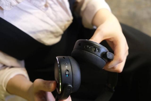 按键及接口不无意外的设计在了耳机左右两侧的下方,其中拨钮式电源按键旁带有LED状态指示灯,而这款耳机最大的亮点在于,电源键旁的环境感知技术按钮,启用后既可以聆听音乐又不会错失外界需接收的声音,这个功能非常实用,在地铁上也不会错过站点的提示,而坐过站!