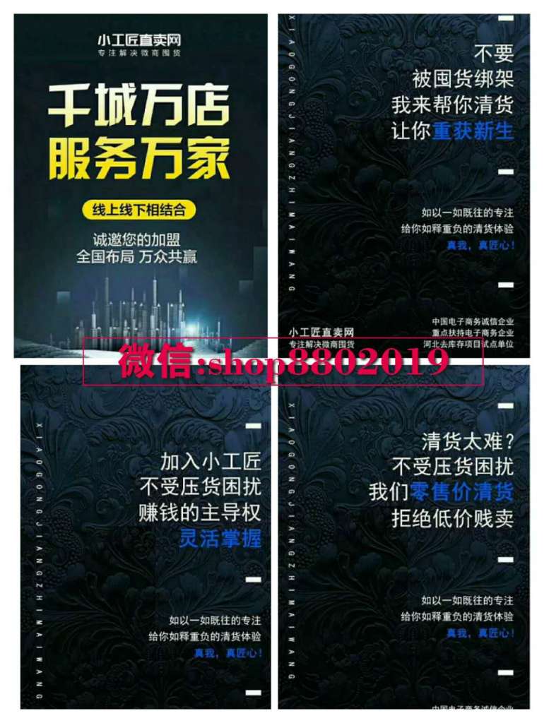 小工匠清货商城前期帮助整个微商市场解决大家的囤货烦恼,同时也是一个互联网电商平台,有独立的APP,它有自己的仓储部,财务部,市场部等,保姆式一站清货!也是微商界唯一一家零售价清货平台,它是微商界的新风口,2015年—2018年微商囤货一蹶不振者,2019在小工匠一定让你翻身!