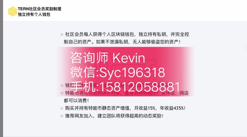 周所周知,现在很多人热衷于投资行业,它变成了人们的一种兴趣,成了人们每天的日常活动。投资项目琳琅满目,哪个最稳定可靠呢?特牛币【tern币】投资低,0风险,要想做第一批吃肉的人,越早抢占黄金位置越赚钱,加入特能币【tern币】,带你发家致富。一手对接团队平移团队