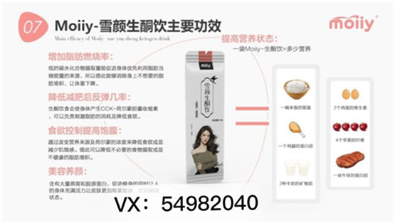 现在最流行的一个词就是“减肥”,然而大部分人尝试过太多的减肥方式都以失败而告终,并且在减脂过程的痛苦和煎熬难以想象。是否想过是不是瘦身减脂的方式出了问题。节食,酵素,大负荷运动,各种减肥药只要说效果好就去尝试,最终都以失败而告终。作为一位专业的健康瘦身指导导师VX:54982040,一定会用科学,营养,健康的方式引导正确饮食,快速瘦身,长久保持,这才是我们真正要找寻的方向。那么敲重点了,所有胖纸的福音来了,Moiiy雪颜防弹生酮饮来了,国内首家生酮减肥饮品,Moiiy再次联合全球超模大赛组织委员会和营养健康品巨头龙唐医药,研发出Moiiy品牌旗下第二款产品Moiiy雪颜生酮饮,并且获得美国权威营养学证书。Moiiy雪颜生酮饮详细咨询VX:54982040