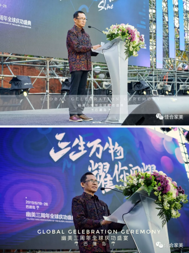 幽美巴厘岛之行,引起巴厘岛政府高度重视。巴厘岛旅游局副主席 KETUT ARDANA亲自来到盛典现场,并发表欢迎致辞。他对幽美家人的到来,表示热烈的欢迎,并表达了对幽美公司的肯定和赞许。