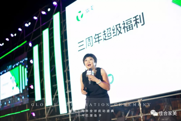 佳合家美健康服务中心负责人陈丽女士,现场宣布幽美三周年超大福利惊喜,引爆全场!