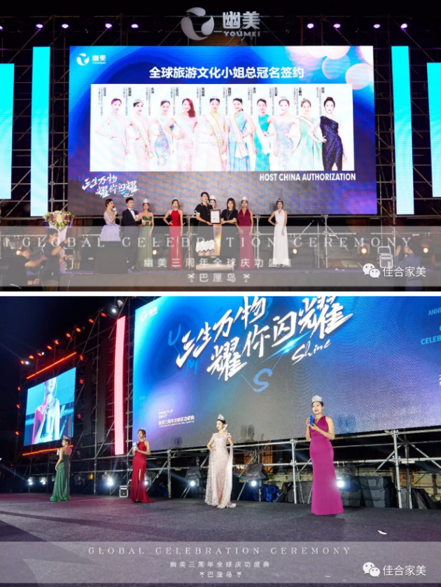 神采奕奕、气质出众的多位全球旅游小姐为我们带来了一场性感时尚的产品走秀。随后,幽美与全球旅游文化小姐总冠名签约仪式成功举行!这预示着幽美品牌将借势全球旅游文化小姐这一超级IP呈现在更多用户面前,全面提升知名度和美誉度,让幽美的品牌在世界的舞台上大放异彩。