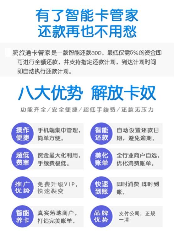 2019年是社交电商元年,是社交电商井喷式发展的一年,互联网大佬纷纷加入这场盛宴。继拼多多,云集成功上市之后,2019年小米推出有品有鱼,环球捕手,素店,蜜芽等社交电商购物平台都蓬勃发展日趋饱和,在你的朋友圈,你的微博,你的贴吧随处可见!会员制电商是让一部分有资源的互联网大咖狠狠的赚了一笔。但市场已经饱和,靠收会员费发展身边朋友,让很多小白伤了一波又一波人脉。支付行业2019刚刚兴起,全国唯一一款上市公司背书,支付公司开发的信用卡管家APP腾旅通另辟蹊径,以免费升级模式推广,完全不伤人脉,市场一片空白,和目前市场上的任何项目都不冲突。裂变速度超级快,真正的自用省钱分享赚钱的产品!项目总监13510609570(微信同号)