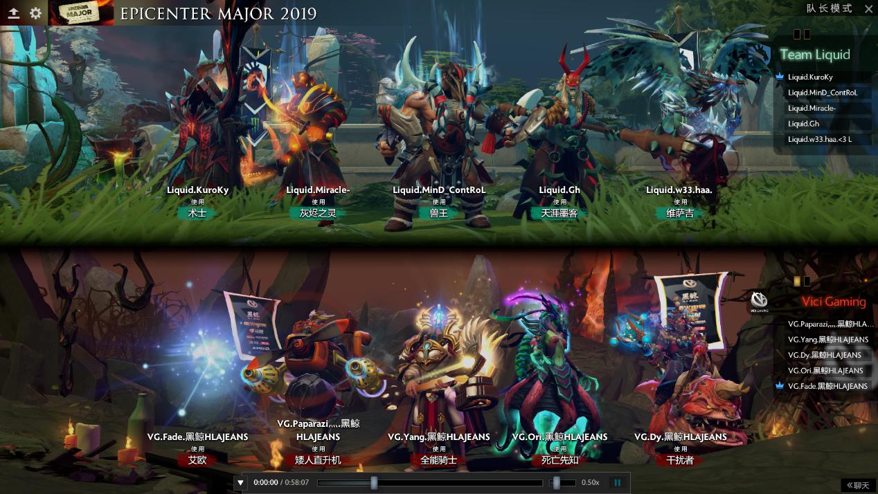 33分钟,VG打盾逼团,发条钩入肉山奈何手速不够盾奶被VG全收,液体双核命陨肉山团,VG乘胜追击再次送给液体一波团灭。液体买活反打利用冰龙大招秒掉全能但是怎奈VG双大哥装备都已成型,配合买活全能再次击杀液体众将,眼见三路被拆的液体只能打出GG。
