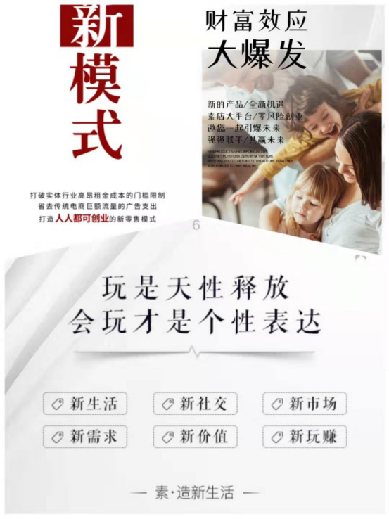 打造了一套傻瓜式社群营销躺赚系统,凭借这套系统创下20天裂变出2000人团队的记录。这套系统可以让一个普通人在半年内推广出一个万人团队,实现财富自由。好项目靠的是口口相传,传递正能量,造福大家。在微商市场趋势下滑之时,素店是所有人的救星!选择素店,让你快速发展团队,快速实现躺赚