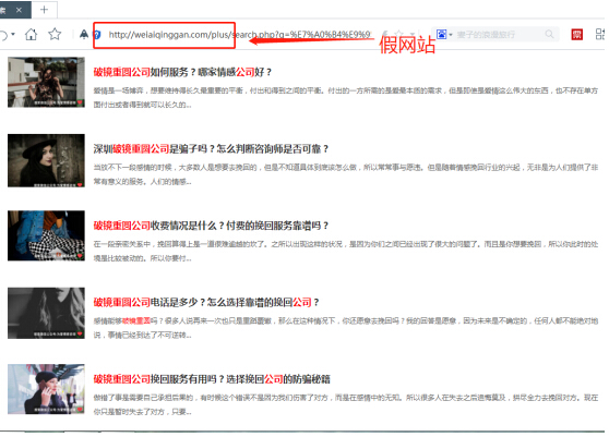 一、假冒破镜重圆公司官网、文章“蹭热度”