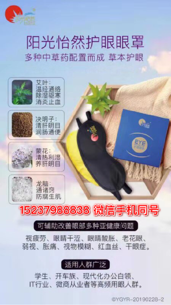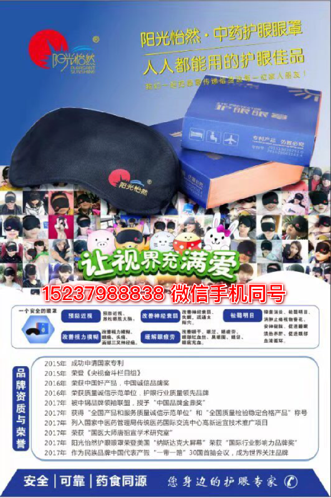 阳光怡然眼罩招商热线:15237988838(微信同号)