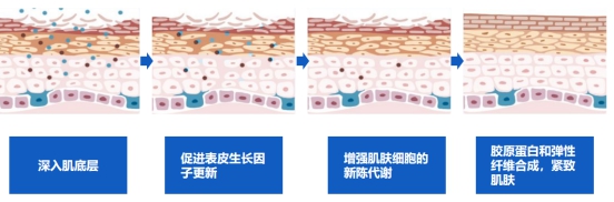 能有效的促进表皮生长因子及角质细胞生长因子的更新,迎合了现今消费者寻找一种无痛和快速且有别于诸如手术、注射、激烈的化疗等传统就能达到皮肤紧致饱满的要求,能在最短的时间内提升和紧致肌肤的同时,亦可提供长期的抗衰老作用。