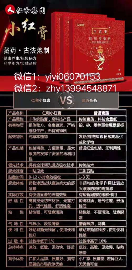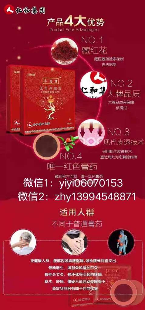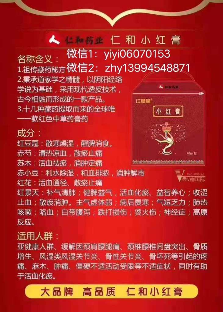 说到仁和小红膏是很突然的一件事,那是前年的一个夏天,我妈突然说我说,我爸腰椎间盘有问题,这段时间经常痛,我妈带着去医院检查,按摩理疗,盲人按摩等,但是效果甚微,痛起来真的连睡觉都是问题啊,同年8月,我在百度搜索有没有一些好的办法能帮助减轻痛处。不经意间搜索出来仁和小红膏,看了一下效果,主要针对腰椎间盘突出,骨质增生,关节炎等等,担心效果,毕竟在医院都没弄好,更何况一个小小的膏药呢,果断关掉网页考虑一下,想了一宿,还是试试看,要是有效果呢?死马当活马医吧,仁和小红膏合伙人全国招募微信1:yiyi06070153 微信2:zhy13994548871电话:13521487193